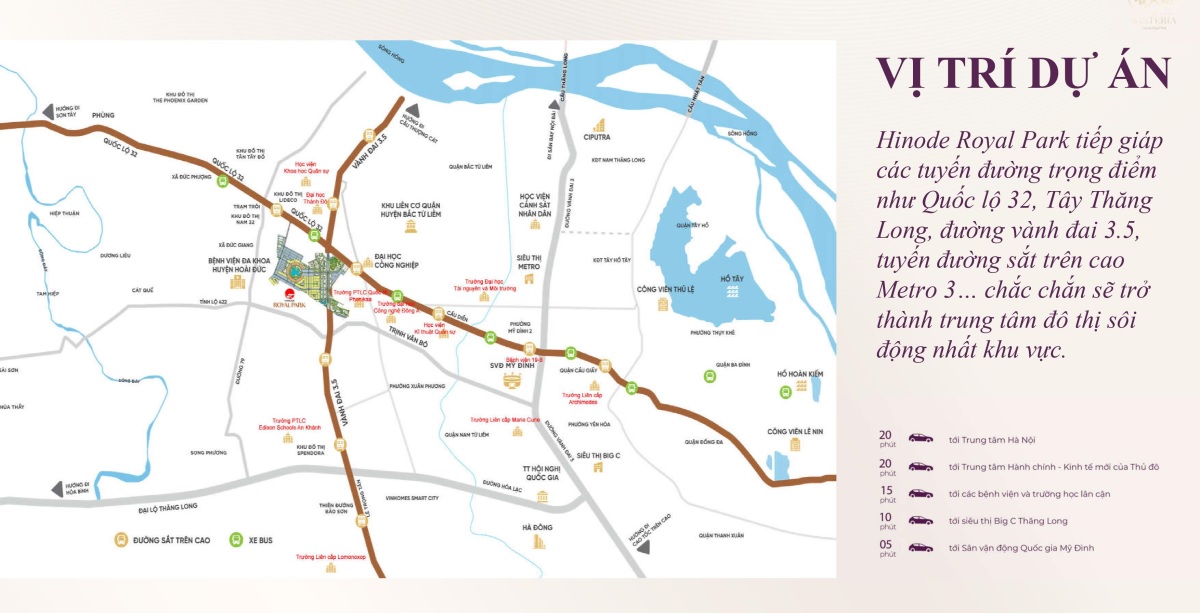 – Tiện ích ngoại khu phong phú: Khu đô thị Hinode Royal Park cũng hưởng lợi từ hệ thống tiện ích ngoại khu của Hà Nội, bao gồm: