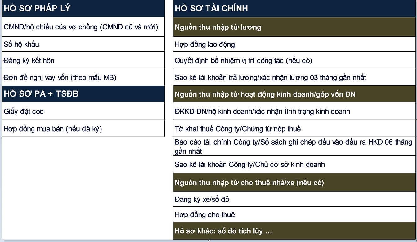 - Hồ sơ cần có: Ngoài HS tài chính, HĐ đặt cọc mua BĐS, các chứng từ thanh toán…