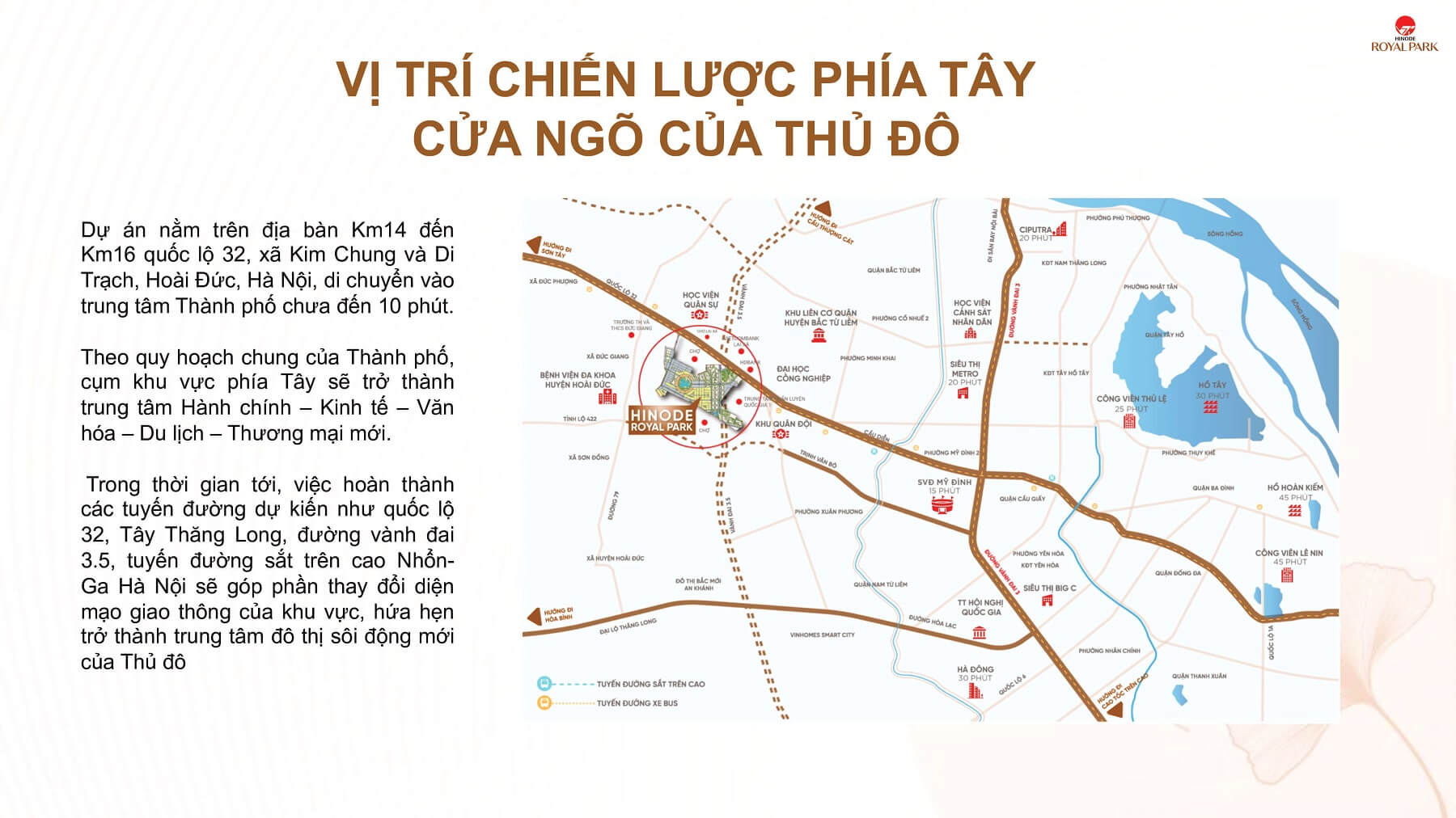 Khu đô thị Hinode Royal Park – Khu đô thị mới Kim Chung Di Trạch là tổ hợp biệt thự, liền kề, shophouse, căn hộ chung cư cao cấp với không gian sống hiện đại cùng các dịch vụ tiện ích hoàn hảo như: hồ điều hòa 6ha, trung tâm thương mại, bể bơi, nhà hàng, Spa, Coffee…