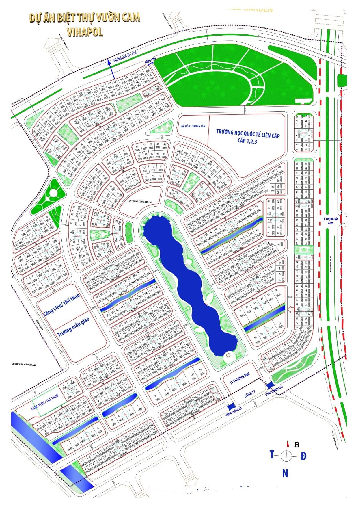 Biệt thự Vườn Cam được quy hoạch trên diện tích đất rộng 6,77ha, bao gồm: